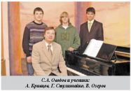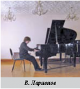 Ларионов Владимир, выпускник 2009 года неоднократ- но становился лауреатом многих городских, краевых конкурсов, участником двух международных конкурсов, мастер-классов и филармонических концертов для детей «Летопись музыкального времени».