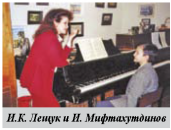 Одно из самых ярких явлений в истории фортепианного отделения – Илья Мифтахутдинов, лауре ат городских и краевых конкурсов, участник циклафилармонических концертов для детей «Летопись музыкального времени». Окончив Красноярское училище искусств (класс С.А. Оводова), Илья становится студентом Новосибирской консерватории им. М.И. Глинки, лауреатом и дипломантом Международных конкурсов в Минске, Томске.